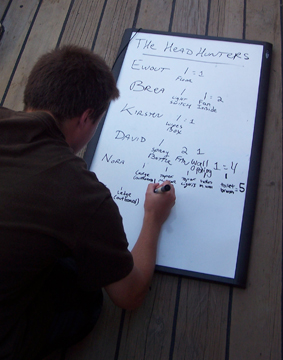 As we wrap up our swim call and turn north toward New London, Mr. Reynolds comes upon signs of a new emergent behavior among the crew. Mr. Van Grondelle, Ms. Barthel, Ms. Robinson, Ms. Reynolds, and Mr. Ellis have declared themselves the Head Hunters -- a group dedicated to finding new obscure items and locations to clean in the head (and scoring points by scrubbing them down). The Head Hunter who cleans the highest total of overlooked nooks and crannies wins the accolates of their peers.