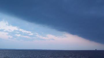 The Half Moon is now in its final approach into New London, and apparently none too soon. Behind us, this dramatic stormfront is moving in from the southeast.