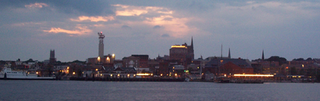 The nocturnal glow of downtown New London beckons as we make our final approach. Fortunately, by now we've determined that the squall will pass behind us to the southl a few drops of rain will be the worst of our worries tonight.