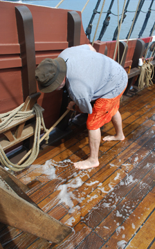 As for those crew members staying on board, we dive into a nice, soapy deck wash.
