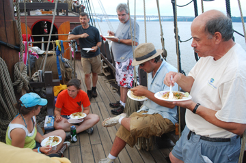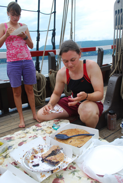 One last task before we prepare to leave: lunch! Under new management, the galley decides that our remaining stock of pies is better eaten now than later. The official ration: All you can eat.