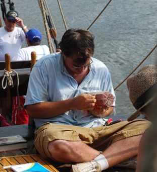 As we pass out of the Highlands, we find Alex still hard at work on his marlinspike project. We'll take a closer look tomorrow.