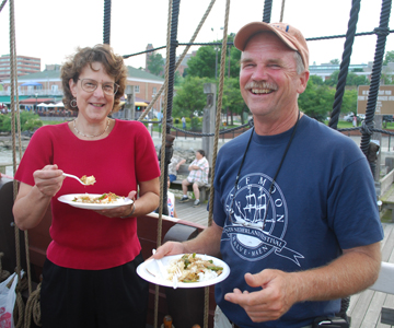 It's a good meal, and good thing, too -- we have a special dinner guest. Betsy McKean is our in Newburgh, responsible both for arranging our week of tours here last November and for permitting us to set our lines here tonight.