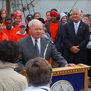 We celebrate our arrival with a great deal of pomp and circumstance. Albany Mayor Gerald Jennings is first to address the crowd.