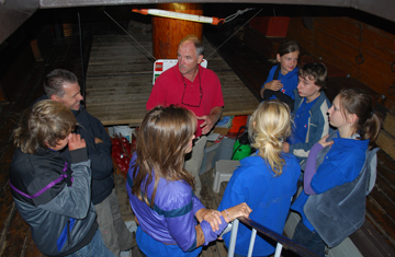 Captain Reynolds leads the students down to the orlop deck, which will be their home for the next week. During the second leg of the Voyage of Discovery, these students will move on to stay with host families in Rensselaer and attend a week of classes with the students they'll meet for the first time tomorrow.