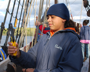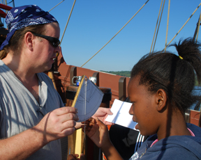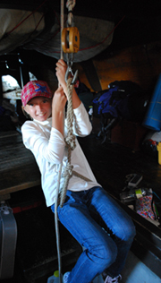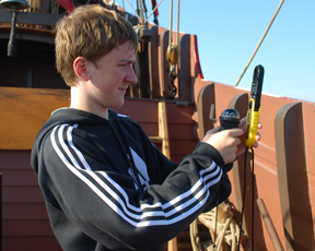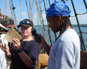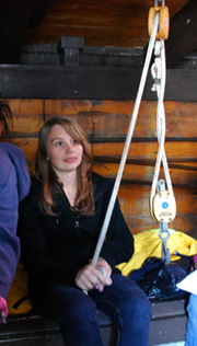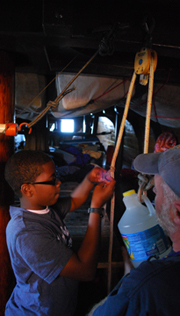 While the Half Moon is underway to Athens Channel on Day Three, two separate teams will study separate but related aspects of the same mechancial advantage experiment.