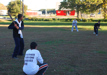 The students and their teachers walk over to a nearby field, where they play baseball, soccer, and just generally blow off steam.