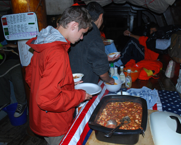 Temperatures may be dropping outside, but the galley is always warm whenever we have nearly a dozen people hanging out in it. The students feel a certain relief in having completed their data. "Only" the presentations remain!