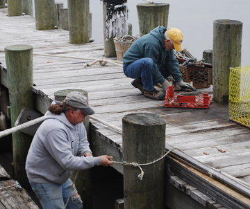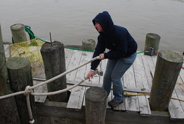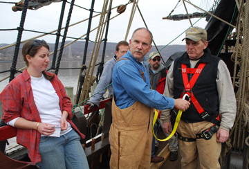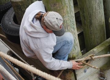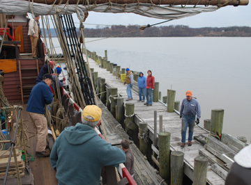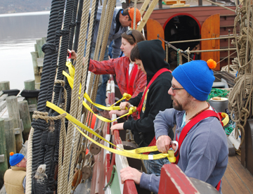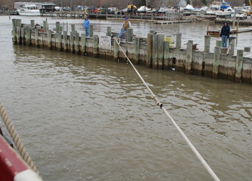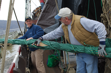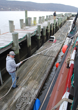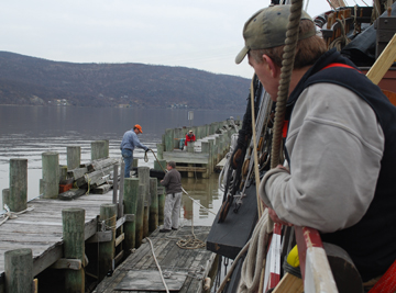 As the Half Moon reaches its intended destination, Jim Read and the rest of the line handlers on board haul their mooring lines home and make fast.