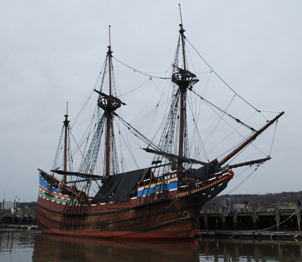 The Replica Ship Half Moon has been docked at King Marine in Verplanck, NY since November of last year. The shakedown voyage isn't technically due to depart until early tomorrow morning, but of course "de-winterizing" a tall ship is no small amount of effort. Welcome to the "ProLog," our customary look into the work that goes on before the voyage begins.