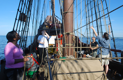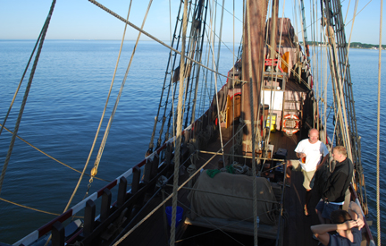 Our sail handlers continue to adjust for the wind as we continue eastward toward the Connecticut River's shipping channel.