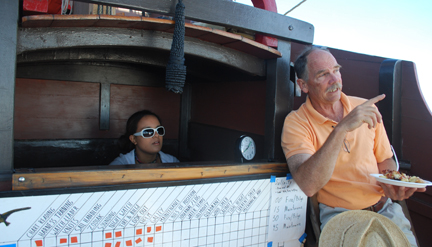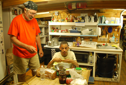 Moments later, the crew gobbles down the breakfast cassarole prepared by Mr. McLauglin's galley.