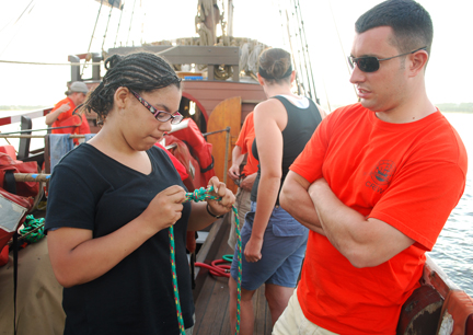 As our morning continues, many of the students are focused on learning how to tie new knots—a noteworthy skill both on the Task Matrix and in the Crew Rating Log.