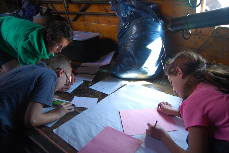 2nd Entry, 1003 Hours: While the Half Moon travels from the Palisades to Haverstraw Bay, the research teams have been busy around the ship preparing their final presentations.