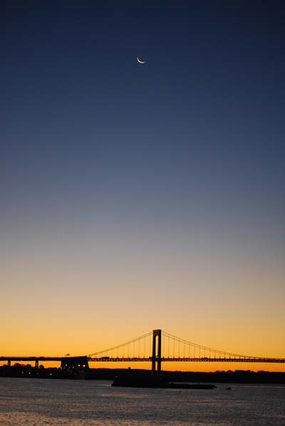In truth, the tracking of celestial objects is as much shipcraft as river science. In 1609 (and indeed, for thousands of years before that and to this very day), celestial navigation was a crucial aspect of nautical life. On this Voyage of Discovery, the research team of Donna, Dustin, Evelyn, Jeannine, Joseph D., and Timothy studied celestial tracking for their presentation project, measuring the height of the sun as it arced through the sky. The same techniques used in their project could also be used to track other celestial bodies, such as the North Star or the moon (pictured).