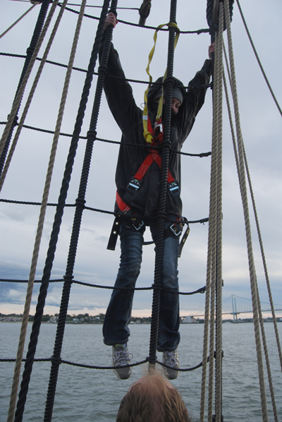 Even after the students have been trained in the use of a safety harness, they still face one more challenge before they can be cleared to climb the rigging.