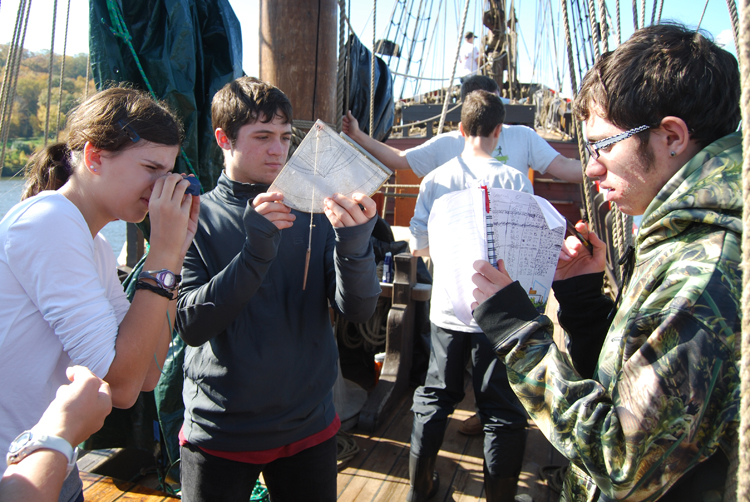 By tracking the sun, we can determine the time of local noon (when the sun reaches its zenith, the point at which it is highest in the sky), which can differentiate from the local standardized time by more than an hour, depending on daylight savings time and one's location in the time zone. In the northern hemisphere, the compass bearing of the sun (its azimuth) at local noon in turn determines true south (which is 180˚ opposite from true north, as opposed to magnetic north). Thus, a celestial navigator could use a quadrant and the sun to calibrate a compass.
