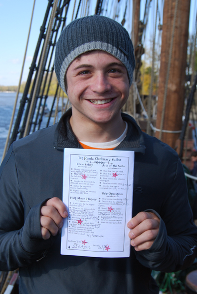 On this Voyage of Discovery, Andrew was the first student to face Captain Reynolds' review, earning the rank of Lichtmatroos/Ordinary Sailor.