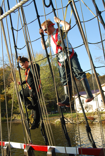 Students also learn the importance of maintaining three points of contact, a climbing technique which ensures that if one limb (either a hand or foot) ever does lose its grip on the rigging, climbers still have at least two more supporting them at all times.