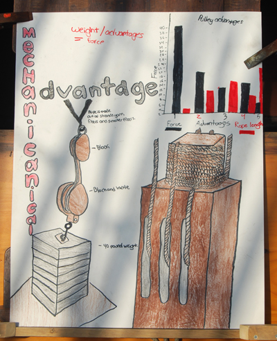 Conclusion: As more lines lead off of the weight, the force neeced to lift the weight decreases; but conversely, more line is pulled through the system to lift the weight the same distance. Their data also demonstrated that friction within the system decreased the theoretical mechanical advantage with each pulley introduced, until ultimately negating the mechanical advantage gained by addding more leads.