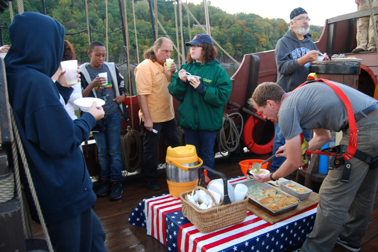 3rd Entry, 1818 Hours: Mr. McLaughlin serves chicken & bisquits for dinner as the sun sets behind the western shore.