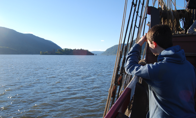 2nd Entry, 0847 Hours: The first leg of our voyage this morning will take us through one of the most scenic and historically important sections of the Hudson River: the Hudson Highlands. Pollepel Island stands guard at the northern end of this narrow, winding stretch of the river. Pollepel Island takes its name from the Dutch term for "soup ladle" (the name being inspired by the shape of the island), but today it's most famous as the home of Bannerman's Castle, the burned-out ruin of an armory fashioned after a Scottish castle.
