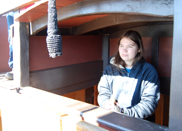 4th Entry, 1106 Hours: Jeannine takes the helm as the Half Moon enters Haverstraw Bay, continuing today's journey toward the mouth of the Hudson River.