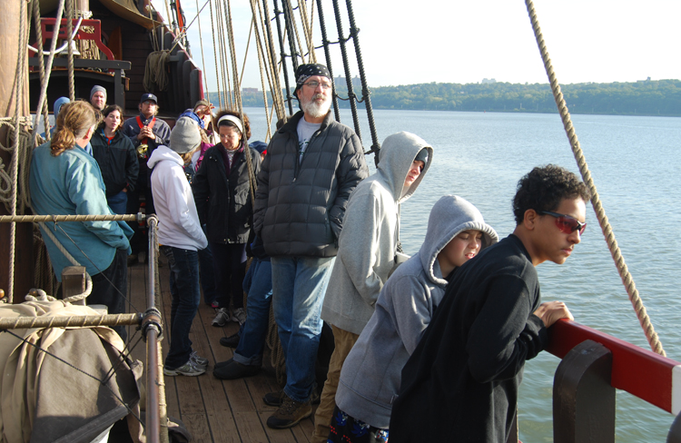 1st Entry, 0919 Hours: After the student meeting, Captain Reynolds fills the crew in on our itinerary for the day. Everyone's eager to get downriver to New York Harbor!