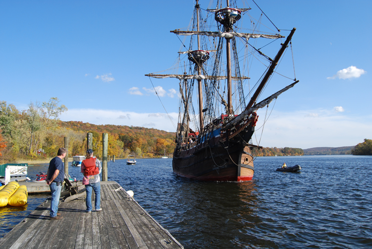 6th Entry, 1430 Hours: Mr. Shorthouse pilots the tender boat, dropping Mr. Woodworth off on the dock to handle lines before returning to assist with maneuvering the ship. We soon have the Half Moon secure with a minimum of fuss. The ship will remain here at Rock Landing for the next two nights, giving the students the opportunity to fully focus on collecting data for their research projects.