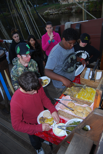 7th Entry, 1713 Hours: The Fourniers again serve dinner on the weather deck. Tonight we're having shepherd's pie, green beans, and fresh biscuits!