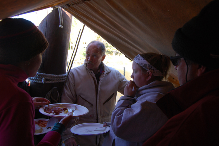 1st Entry, 0918 Hours: While the students eat breakfast, Captain Reynolds meets with the Connecticut River Academy educators in their roles as senior project advisors, plotting out some planned events and how the students should approach their research over the course of the day.