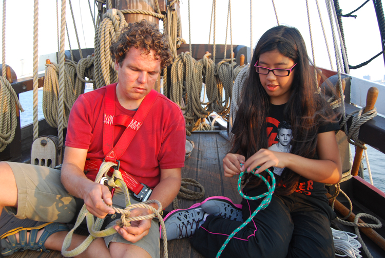 Students also learn a few basic knots, such as the square knot, the half hitch, and the bowline. Students can then use these combined skills as a foundation to master more advanced tasks, such as handling the sails or the art of marlinspike.