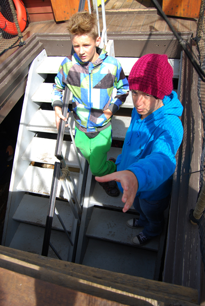 Entry Two, Part 1 of 8: 1139 Hours: As we round the point from Coney Island to Gravesend Bay, the anchor team moves into position. Ms. Stevens briefs Yarick on the role of communicator, relaying messages between Captain Reynolds on the Quarter deck and the crew member stationed at the bits on the orlop deck.