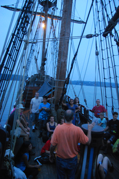 Entry Four, Part 8 of 8: 1931 Hours: In the deepening gloom of dusk, Captain Reynolds gathers the crew for our nightly anchor watch briefing. We expect rain during the night and into tomorrow, but compared to our coastal anchorages, the waters will at least be calm. Tomorrow brings the final full day of this Voyage of Discovery for our student crew — and their research presentations!