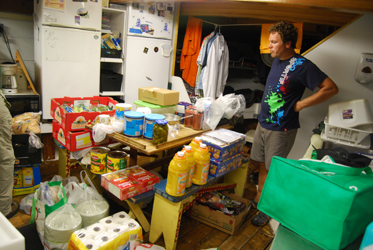 Entry Four, Part 3 of 8: 1353 Hours: The new crew and their gear weren't the only things we've loaded on board during our brief layover at King Marine. Down in the galley, Mark Morel takes a moment to absorb the sheer mass of the provisions Mr. de Vries has brought back to the ship to keep the crew well-fed to Albany. Remember that he's feeding 25 people for 7 days!