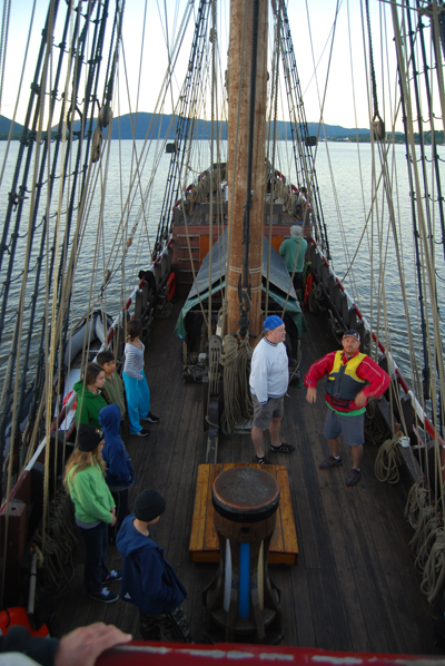 Entry One, Part 1 of 8: 0650 Hours: As the first full day of our Voyage of Discovery dawns, the Half Moon is anchored just south of the Newburgh-Beacon Bridge in Newburgh Bay. We've risen at the track of dawn today to catch an early tide, and now the student crew has just finished stowing their gear for the day.