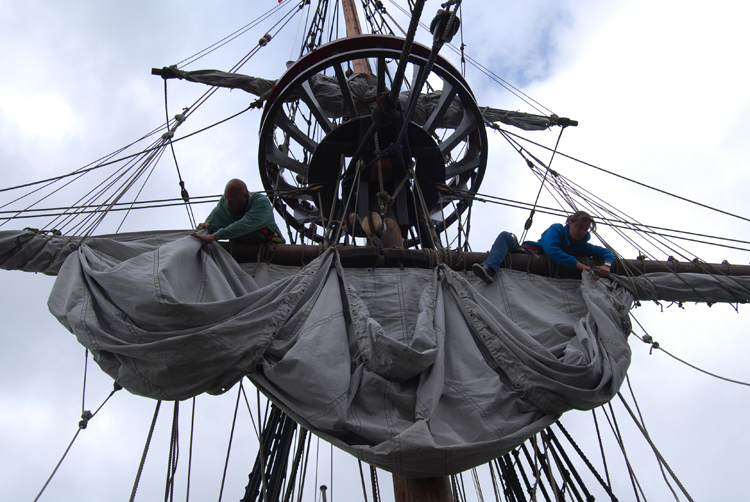 Entry Four, Part 3 of 8: 1558 Hours: Mr. Drew and Ms. Stevens head aloft to furl (tightly wrap and bind) the main course.