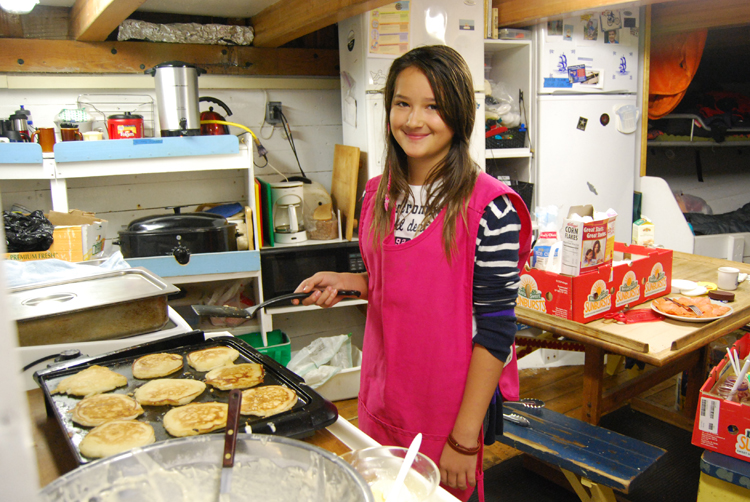Entry One, Part 6 of 8: 0855 Hours: At the top of the hour, Tajbe steps into Jack's shoes, taking over in the galley. Cooking up more than 100 pancakes is no easy task! She and Mr. de Vries soon serve breakfast, which we enjoy while underway.