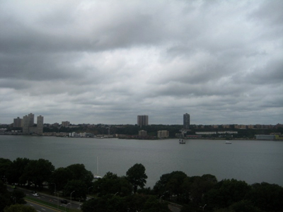 3rd Entry, 1304 Hours: As the Half Moon sails past Manhattan, a friend of the ship, W. B. Kern, spots us and sends in this photo. The ship looks a little smaller from this angle!