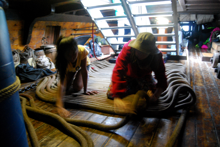 1st Entry, 0756 Hours: In the prow of the ship, Thiri and Kira are a blur as they fake the rode.