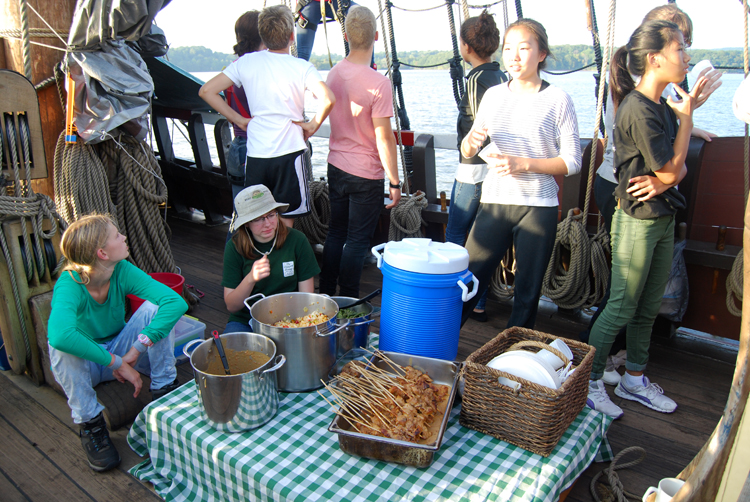 5th Entry, 1816 Hours: Tonight's traditional dinner of chicken kabobs, mixed rice and vegetables, and peanut sauce comes to us from the Spice Islands (modern Indonesia) by way of the Netherlands.