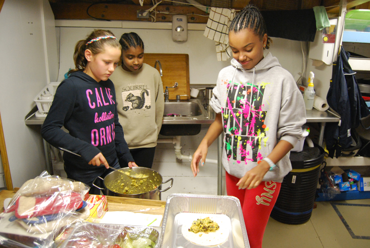 3rd Entry, 1620 Hours: As the afternoon winds onward, McKale, Lalita, and Aliviya work together to ready enchiladas for the oven.