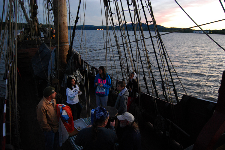 4th Entry, 1924 Hours: As the sun sets behind Kingston, NY, we bring down our flags and prepare for our first night at anchor.